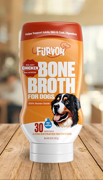 We only use 100% human-grade bone broth that is naturally packed with vitamins, minerals, proteins, collagen and all 10 essential amino acids to support your dog’s health inside and out.